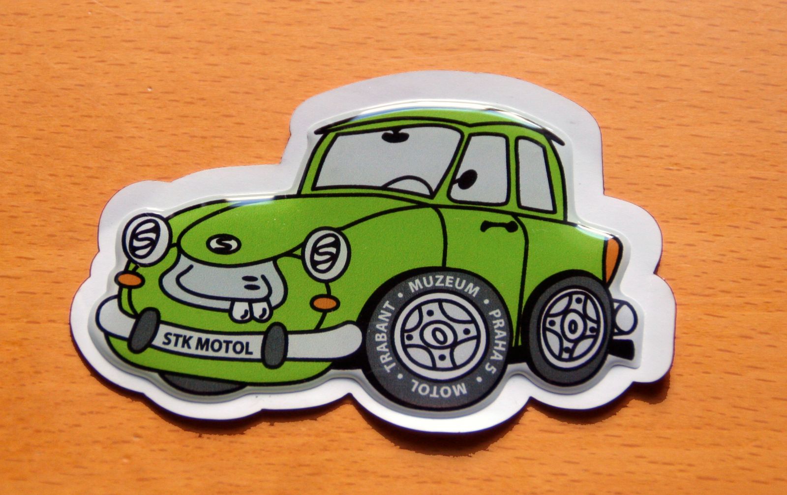 3D samolepky - zalité do pryskyřice,  pro Trabant Muzeum Motol